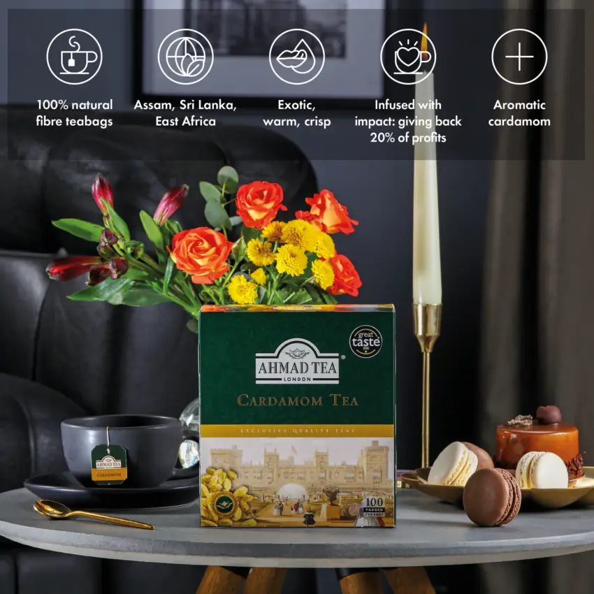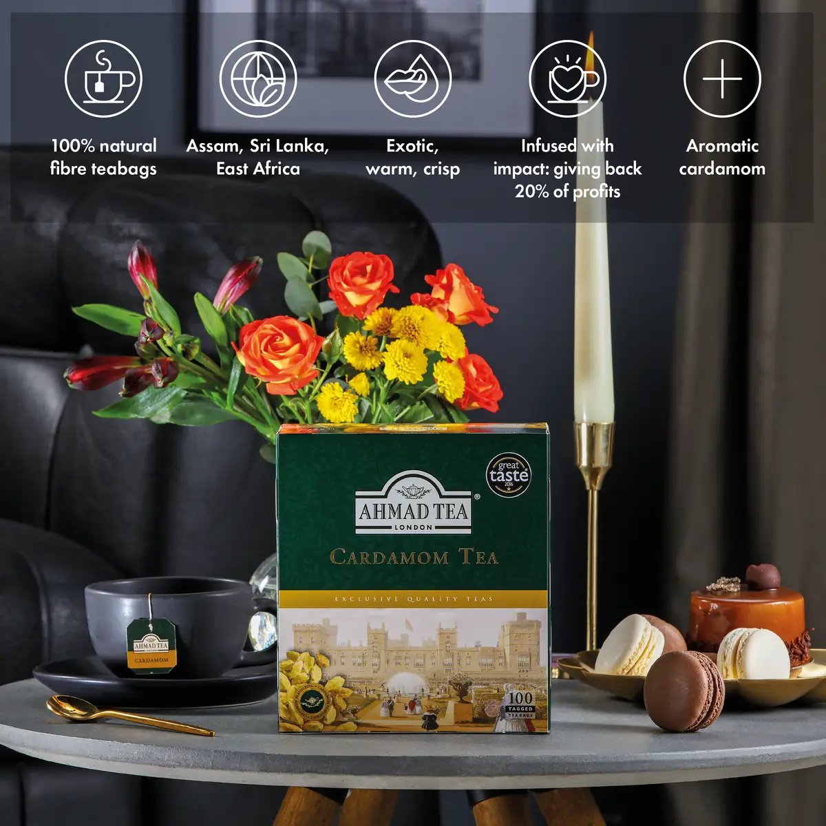 Ahmad Tea – Cardamon Tea – 100 Teebeutel mit Band mit 2g Tee pro Portion